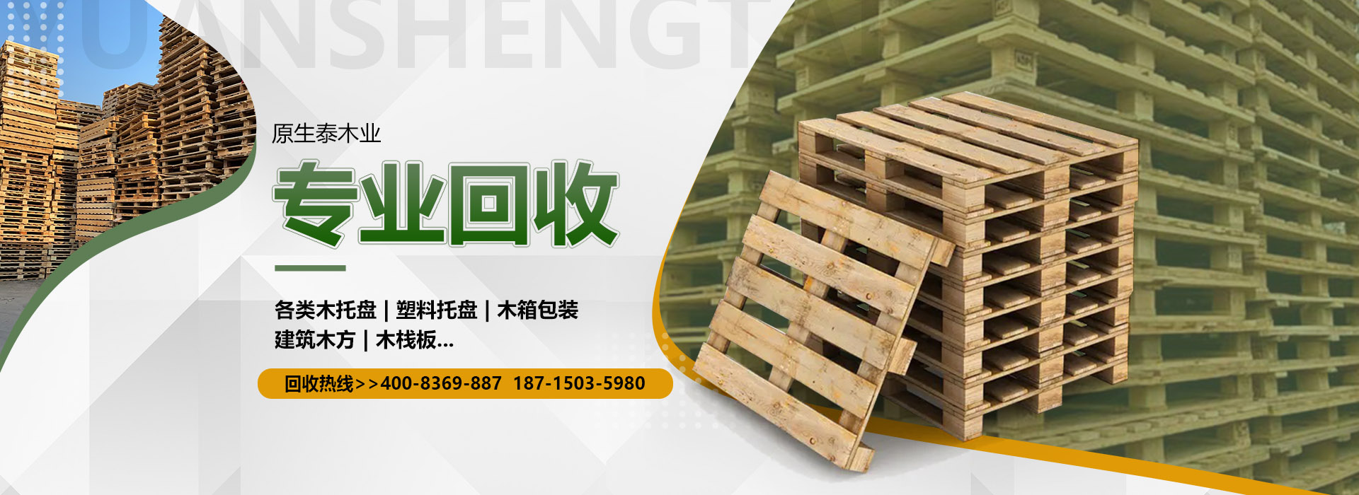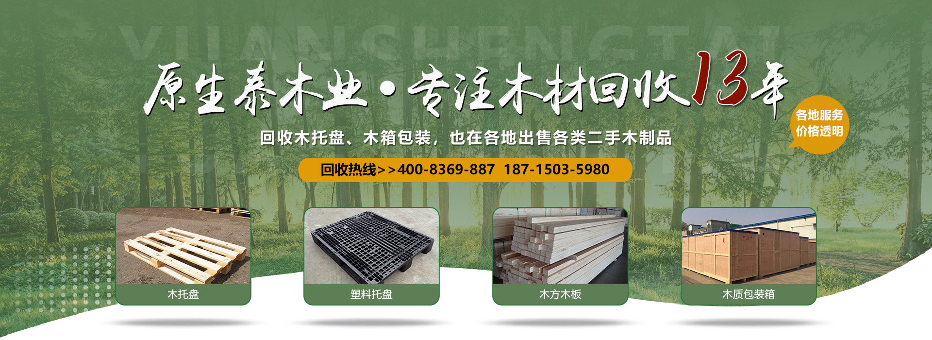 關于我們原生泰木業(yè)有限公司是一家服務各市的企業(yè),本公司是以回收各類二手廢舊木材為主,主要回收各類木托盤、塑料托盤、木箱包裝、建筑木方木板、木棧板等等。本公司收購價格以托盤、木箱木材的規(guī)格、使用情形、新舊程度、材質為估價標準,如果您有意向出售您的閑置木制品以及塑料制品,請您聯(lián)系我們時告知其數(shù)量、尺寸、型式、使用情形,我們免費為您提供電話估價或到現(xiàn)場報價。本公司是一家經(jīng)工商局嚴格注冊的正規(guī)木制品回收公司,回收木托盤、木箱包裝致力于環(huán)保建設、綠色合作以求雙贏。同時原生泰木業(yè)公司也對各地范圍出售二手木托盤、二手塑料托盤、各種二手木制品。及時送貨上門,價格公道。公司下轄木材加工廠,組裝廠,并備有大型標準烘房,多功能平板刨,壓刨,挖槽,機械設備等。產(chǎn)品主要生產(chǎn)各類木托盤、木包裝箱銷往國內大中型城市并隨貨通行出口國外。本公司將以豐富的知識,提供合適的方案來服務和滿足每一用戶不同的需求,品質至上,誠實守信。